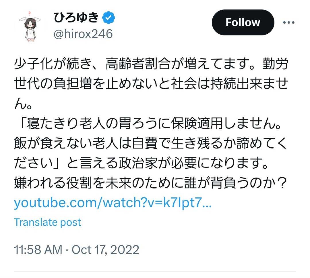 っていうより根本の問題でいうと少子化より高齢化のが深刻だからってことや