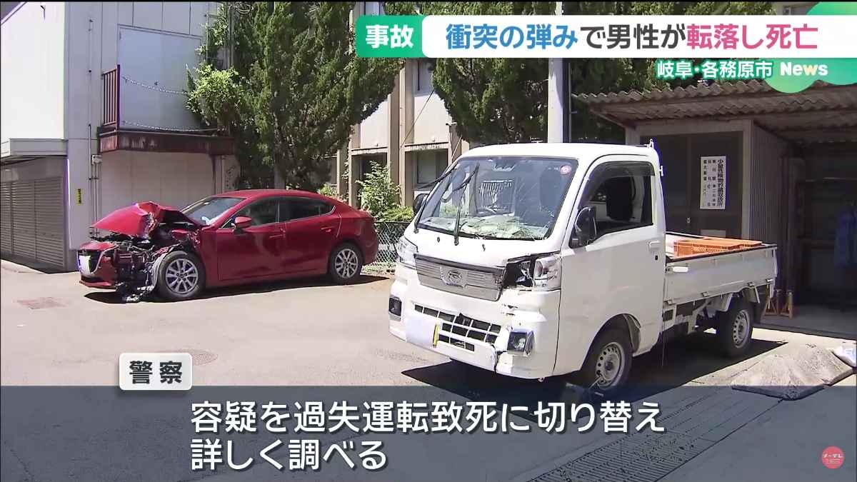 22日早朝、岐阜県各務原市で、止まっていた軽トラックに車が衝突する事故があり、その弾みで男性が田んぼに転落して死亡しました。