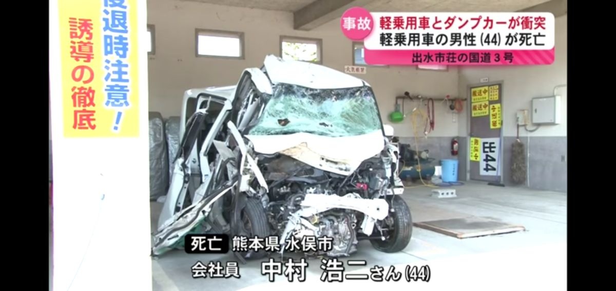 国道3号で軽乗用車とダンプカーが衝突 軽乗用車を運転していた男性(44)死亡 鹿児島・出水市
