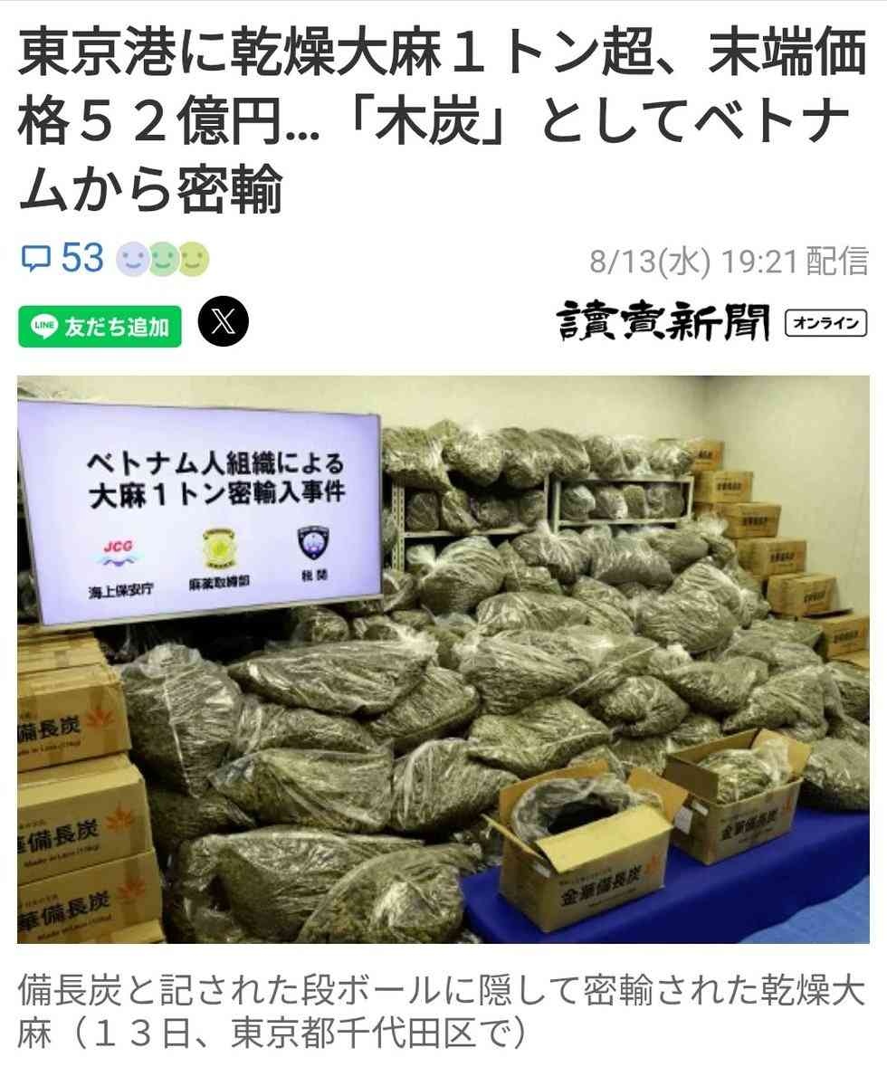 東京港に乾燥大麻1トン超、末端価格52億円…「木炭」としてベトナムから密輸(読売新聞オンライン) – Yahoo!ニュース