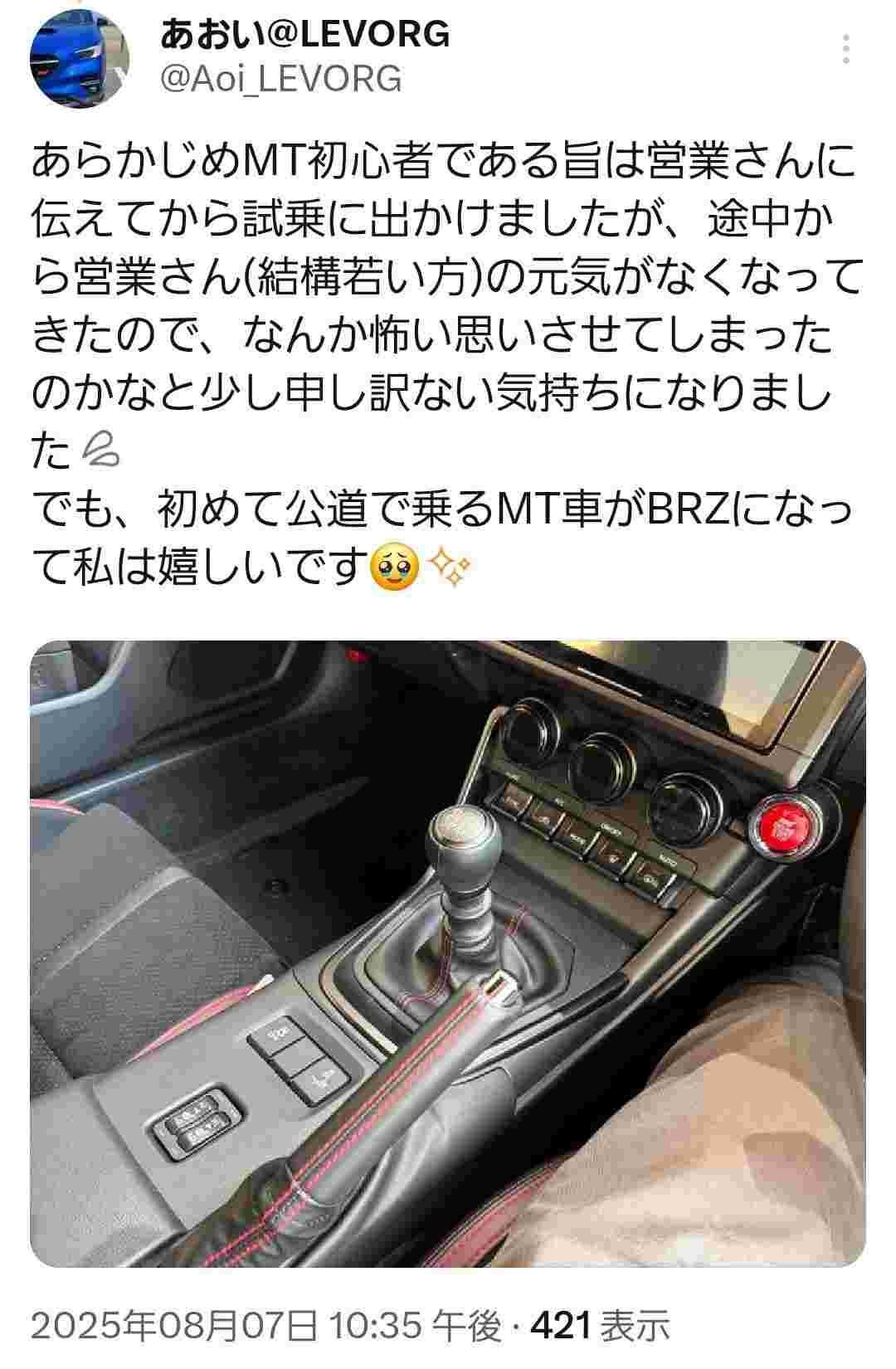 MT初めての公道が試乗車でしかも買う気ないとか、愛想よくしろって方が無理だろ