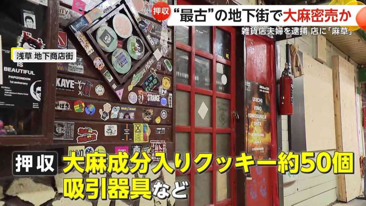 東京・浅草の地下商店街にある雑貨店のオーナー夫婦が2024年6月、乾燥大麻などを販売目的で店に置いていた疑いで、8月15日に逮捕された。店から大麻成分入りクッキー50個や吸引器具が押収され、店には大麻を連想させる「麻草」という文字やイラストもあった。2人は店で大麻を販売し、客に吸わせていたとみられている。