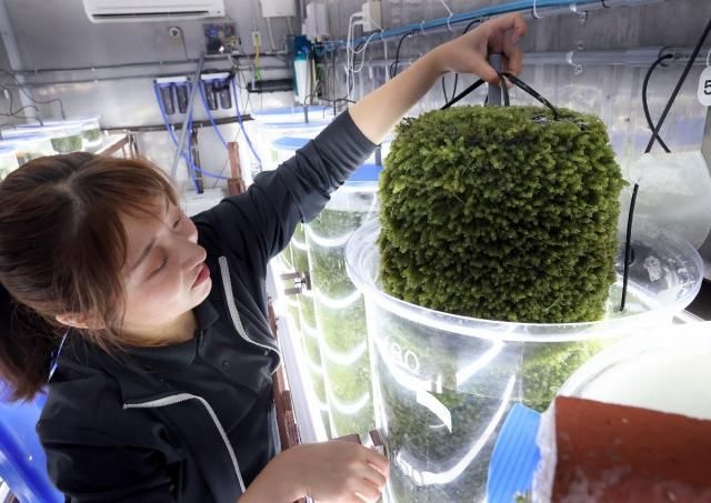 県漁連(是澤喜幸会長)は「海ぶどう」の通称で知られる海藻・クビレズタの陸上養殖に取り組んでいる。昨年9月にコンテナ式の養殖システムを導入し、今年7月、初出荷にこぎ着けた。漁業者の高齢化が進む中、栽培技術を確立することで、天候に左右されず短期間で収穫可能な新しい収入源として県内での普及を目指す。