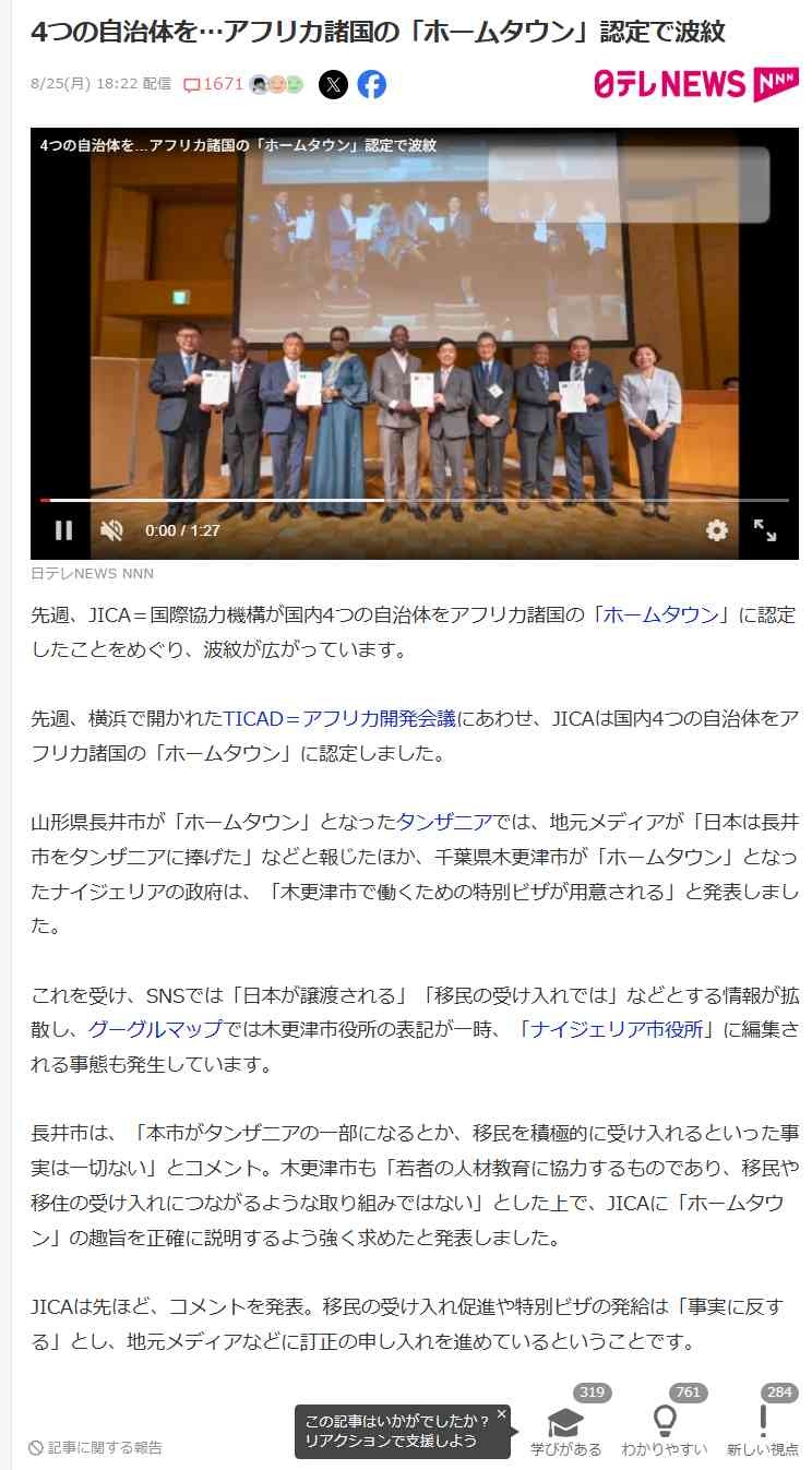 日本人さん、英語力が低すぎて「ホームタウン」が移民を促進する意味だと思い込み発狂w