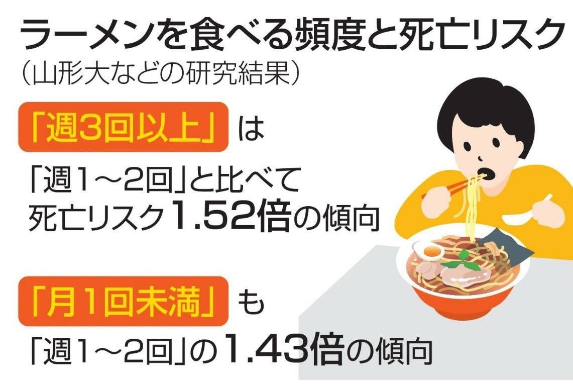 ラーメンを月1回未満の人は、週2、3回食いまくる人より1.43死にやすい