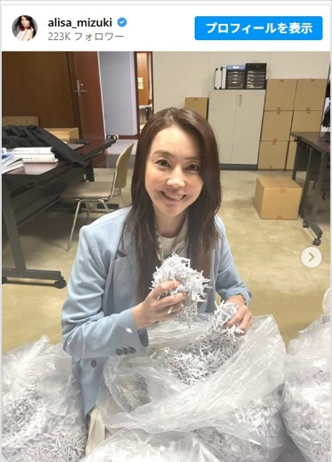 観月ありさ、シュレッダーから重要書類の紙片を捜索 無理すぎるオフショットに「すごい量 笑」