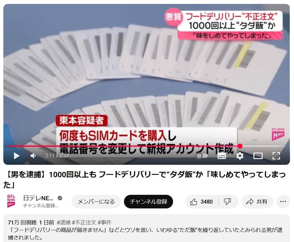 【男を逮捕】1000回以上も フードデリバリーで“タダ飯”か「味しめてやってしまった」