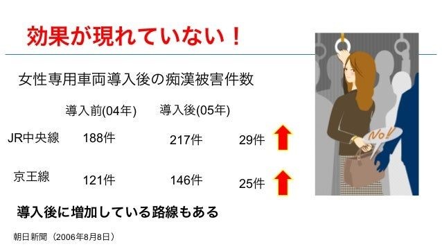 痴漢ソムリエから見れば女性専用車両に乗っていない女は痴漢されても文句ないよなって思われて逆に痴漢が増えそう