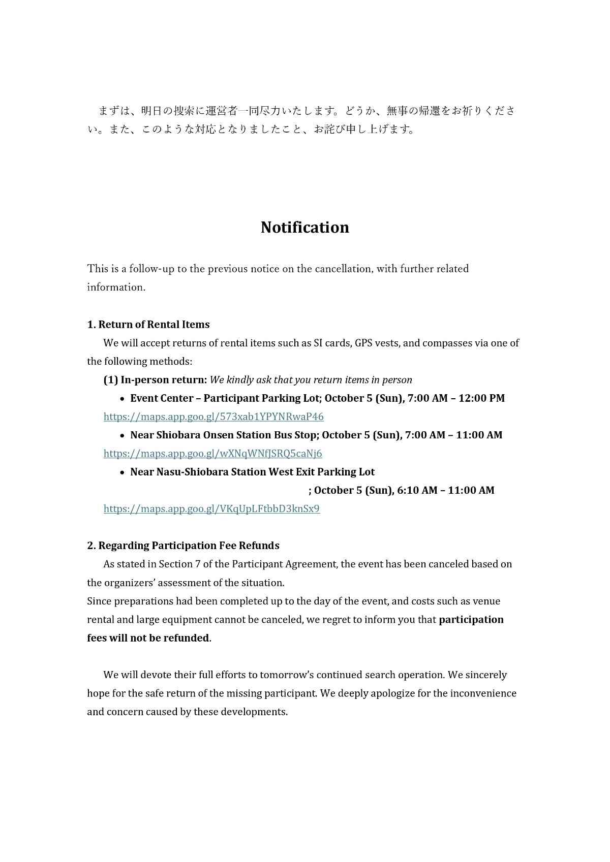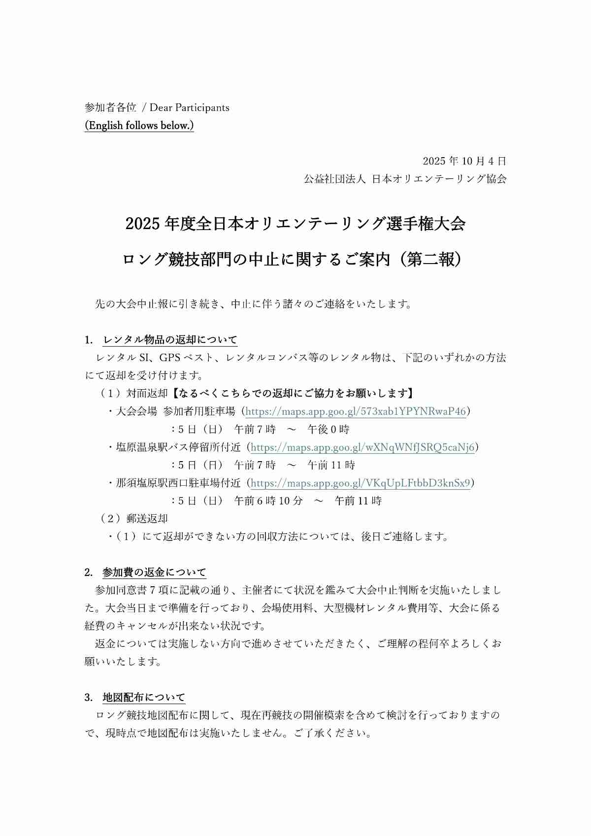 1. レンタル物品の返却について レンタルSI、GPSベスト、レンタルコンパス等のレンタル物は、下記のいずれかの方法にて返却を受け付けます。