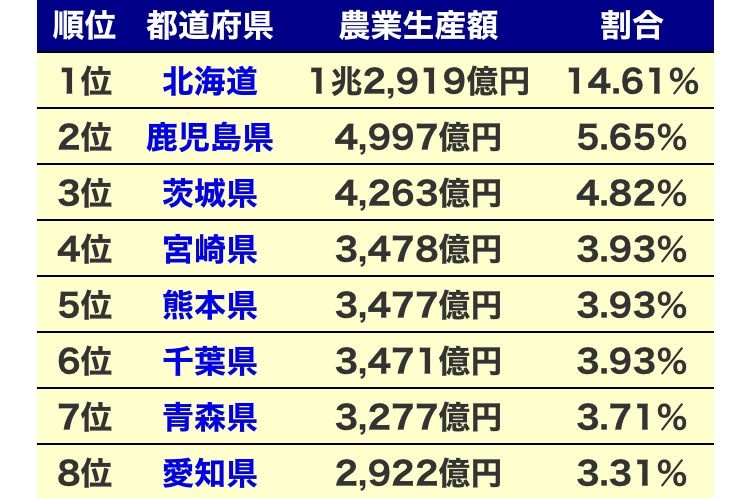 農業出荷額 東京47位