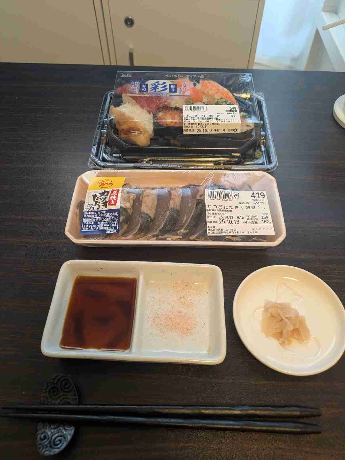 まだカツオは一切れしか食べてなくて、寿司は開けてもないのに😂😂😂
