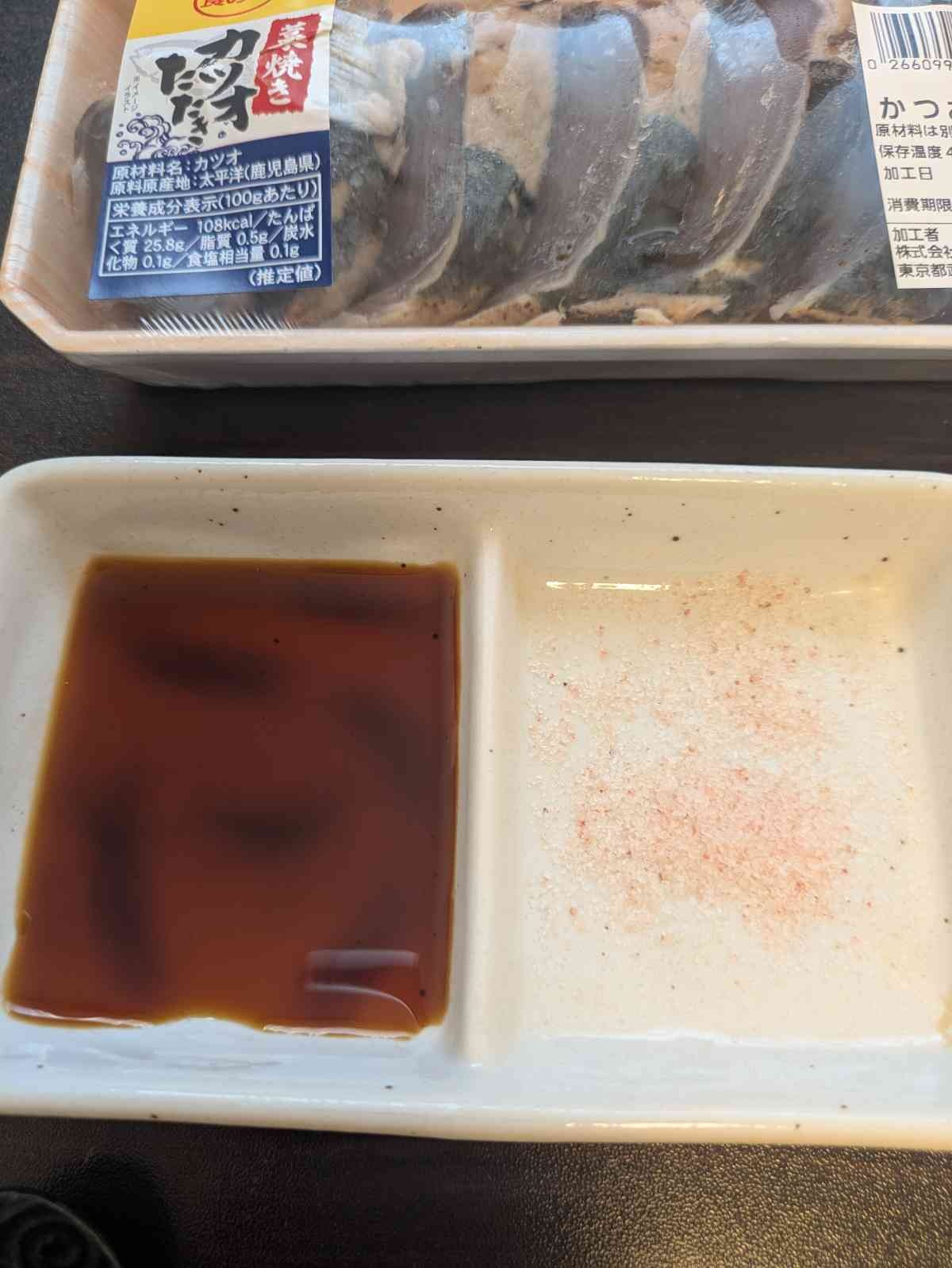 カツオのタタキなのにネギもミョウガも生姜もニンニクもない…控えめに言って💩以下やね
