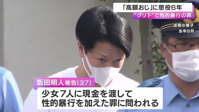 大阪地裁は、懲役6年の実刑判決を言い渡しました。飯田明人被告(37)は11歳から16歳の少女7人に現金を渡して性的暴行を加えた罪などに問われています。