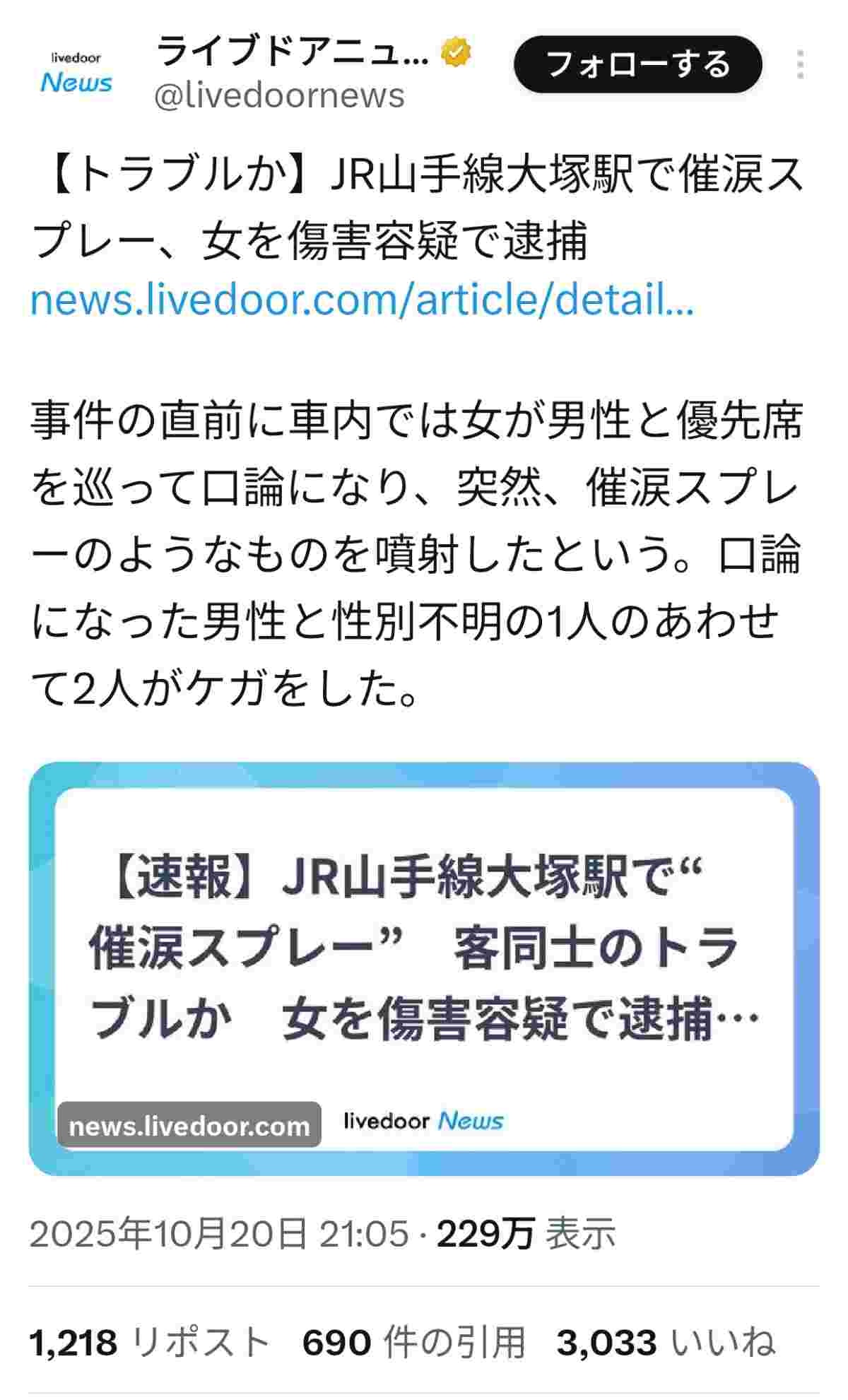 電車内で催涙スプレーとか最早テロだろ