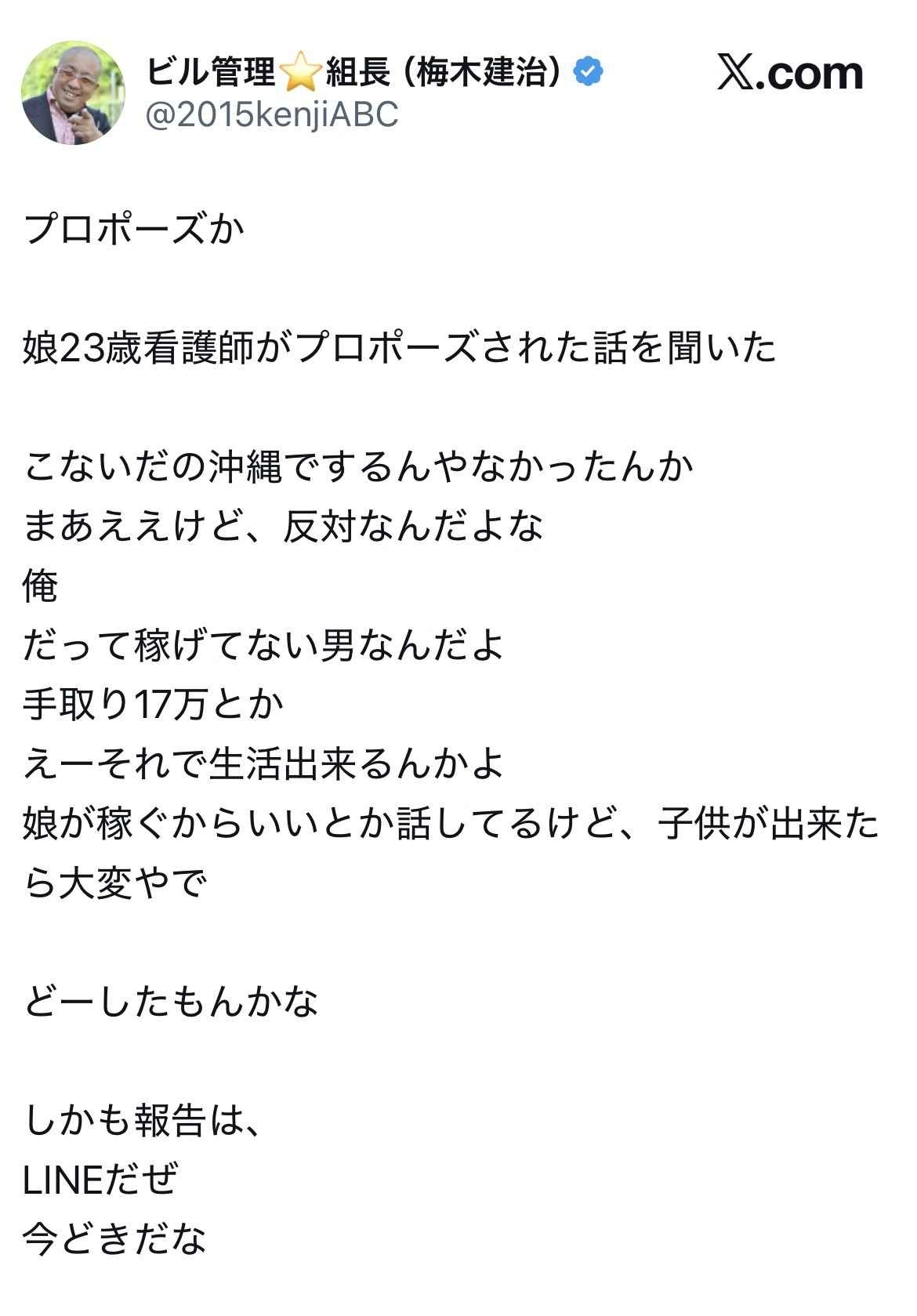このおっさんが同じおっさんに娘ちゃん取られたくないのはわかるけどさ