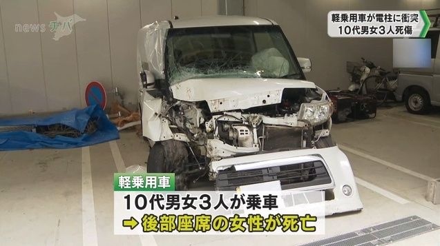 10代男女3人乗る軽自動車が電柱衝突…後部座席の女性死亡 シートベルトしていなかった可能性も 男女2人搬送も意識あり 千葉・旭市 (FNNプライムオンライン(フジテレビ系)) - Yahoo!ニュース千葉県旭市で26日、10代の男女3人が乗る軽乗用車が電柱に衝突する事故があり、後部座席に乗っていた女性が死亡しました。26日午後6時半ごろ、旭市神宮寺で10代の男女3人が乗っていた軽乗用車が電柱news.yahoo.co.jp
