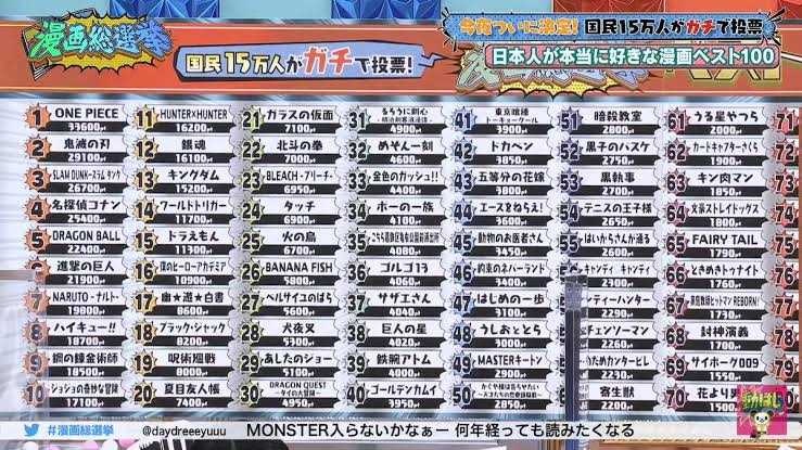 手塚入ってないしドラえもん低すぎ