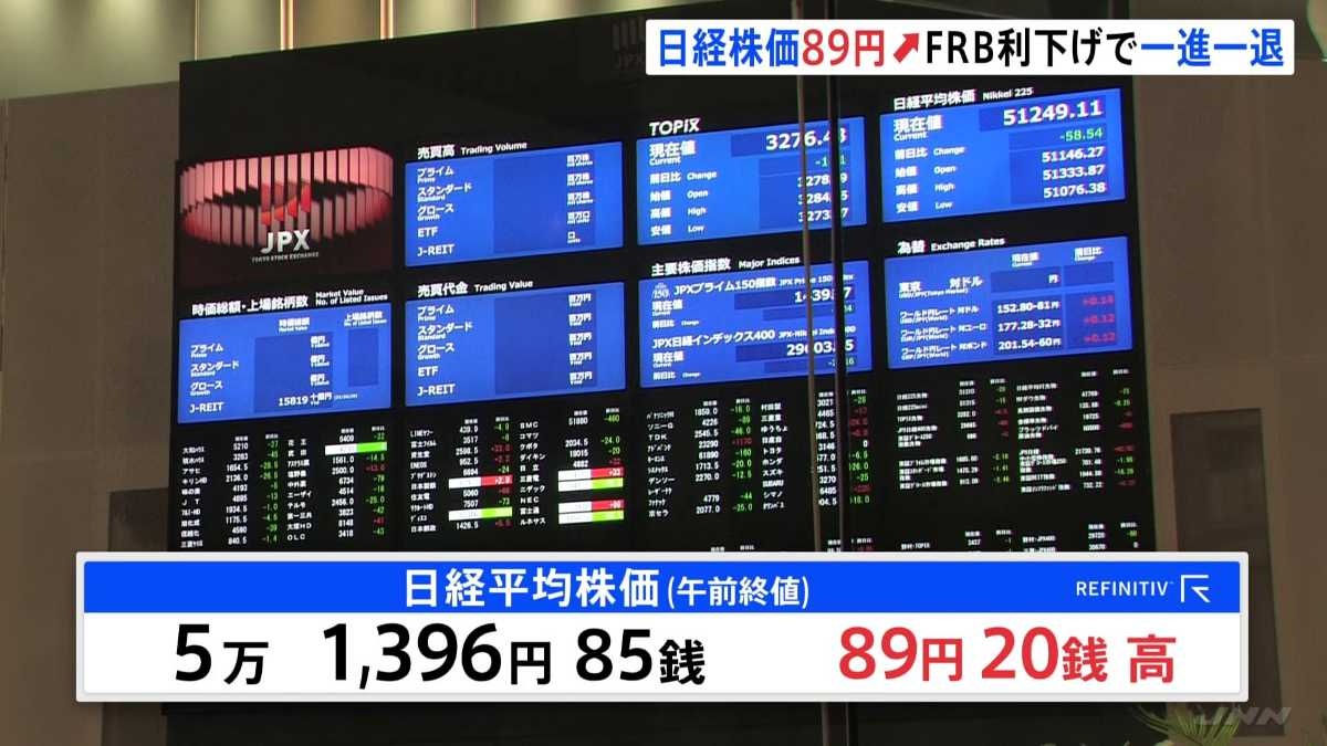 日経平均30日午前は5万1396円 米FRB政策金利0.25%引き下げ受け、89円の小幅な値上がり