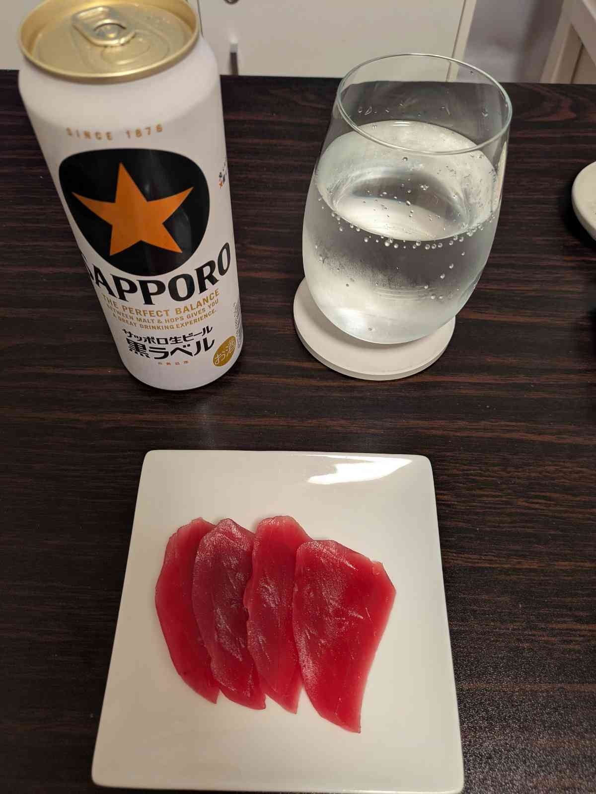 まぐろのお刺身の時点で優勝だし、餃子で再優勝だし、黒ラベルで駄目押しの優勝ラッシュでしょ😆