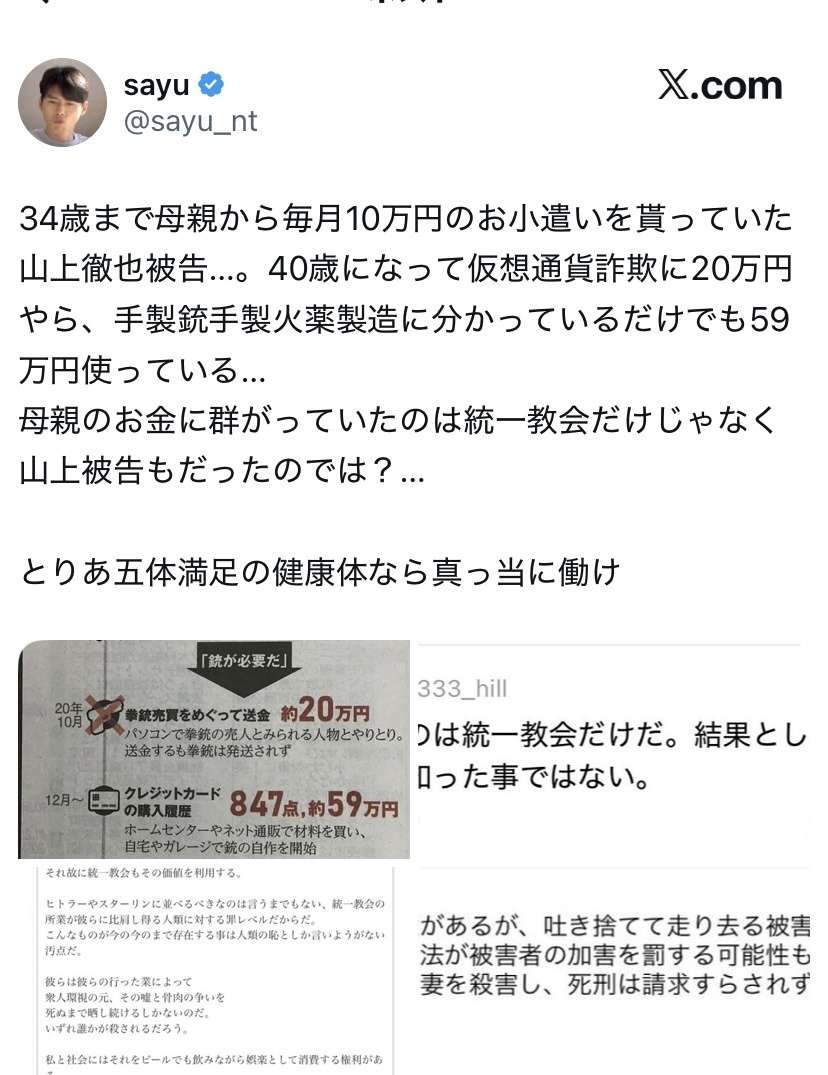 ほらー検察が叔父が援助した金を母親経由で山上に渡してたことを隠すからこんなスレが立ったじゃん