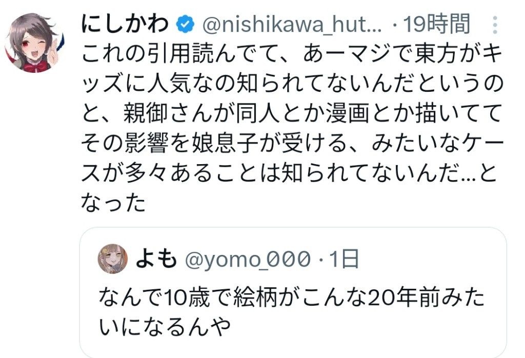 東方なんてもうおじさんのコンテンツかと思ってたけど若い子はどこから東方を知るんだろうな