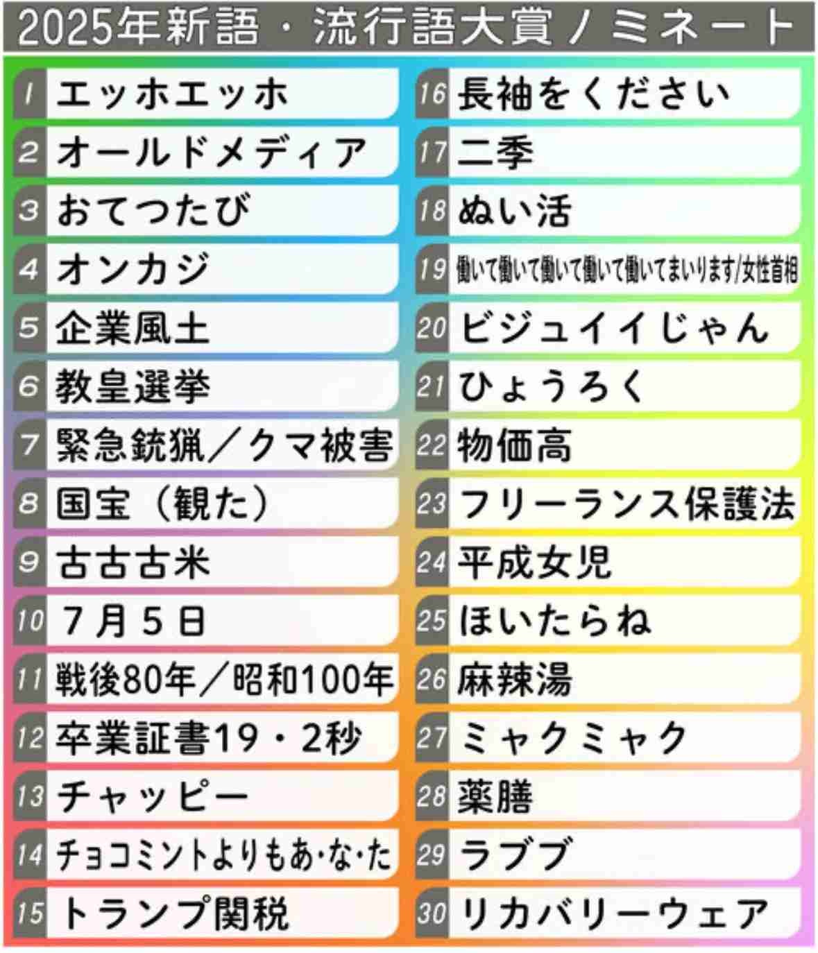 今年はなかなか知ってる言葉が沢山あるな