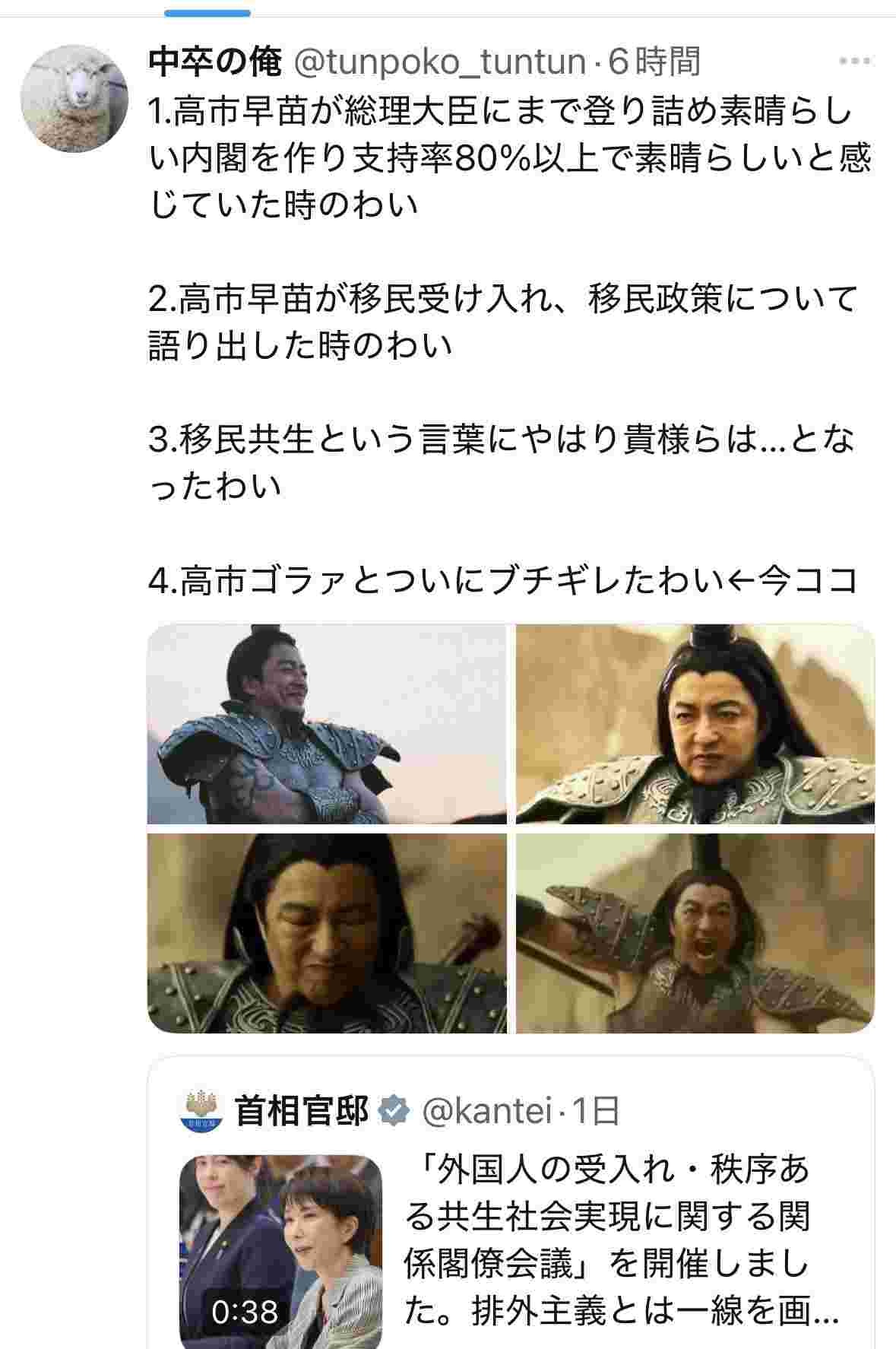 高市「またバカウヨが勝手に期待して勝手に失望してるよ🤭」