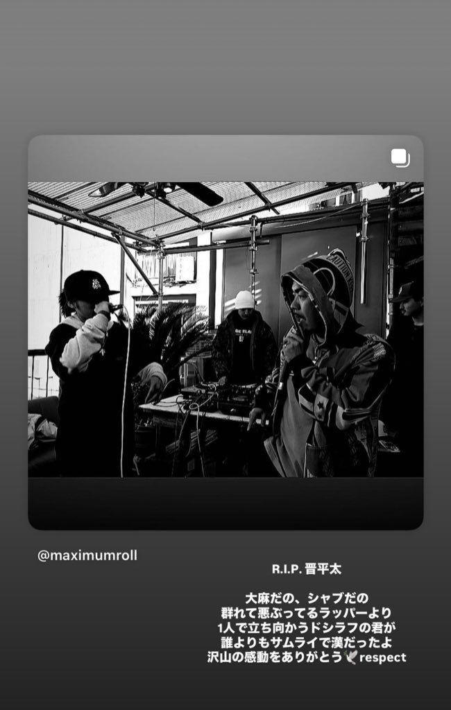 これを受け、札幌のギャグ男は同日、インスタグラムで晋平太さんに言及。訃報は「身内」しか知らず、公表を避ける方針だったところが、「誰かがツイッター(X)にあげちゃって」と経緯を明かしました。「もっとできたことがあるのかなぁってすげぇ思った」と後悔の念もにじませたギャグ男は、晋平太さんとのツーショット写真も投稿し、「愛してます RIP」との言葉を添えています。