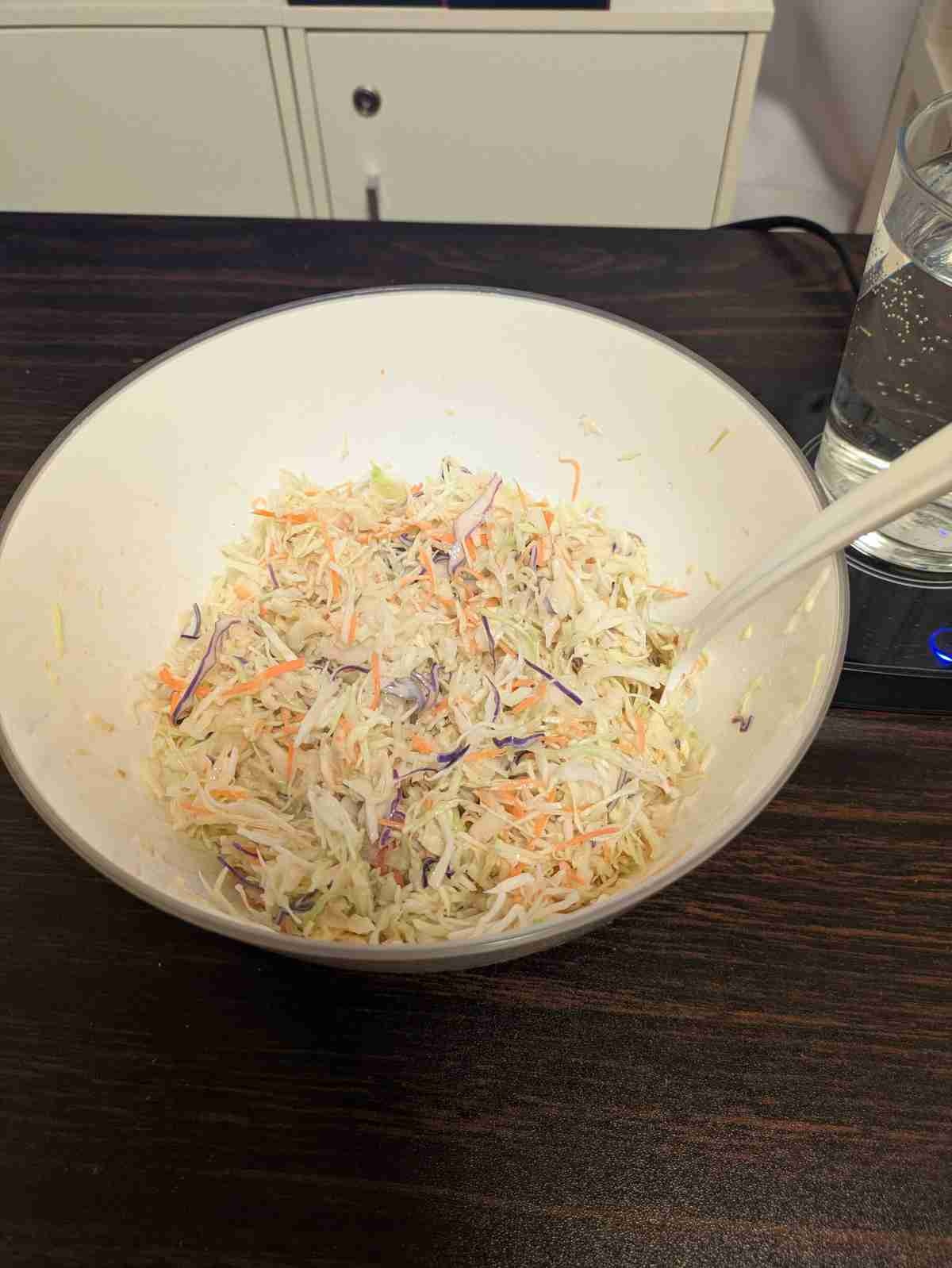 キャベツの千切り袋詰めでよく売ってる150gのやつの2倍量のやつにクラッシュしたナッツとナッツクリーミードレッシングかけて混ぜただけ😂