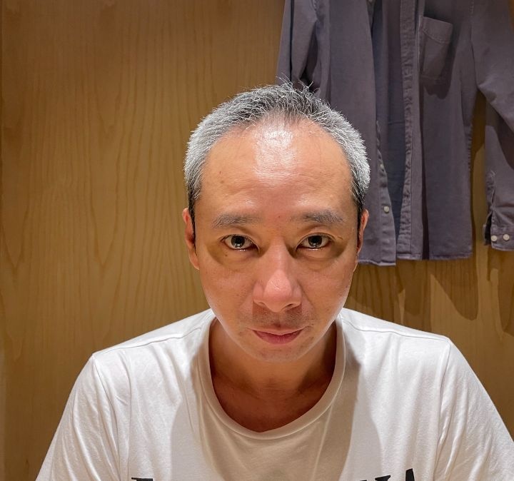 髪の毛伸ばして額ハゲ隠してるだけやん。中川家礼二方式w
