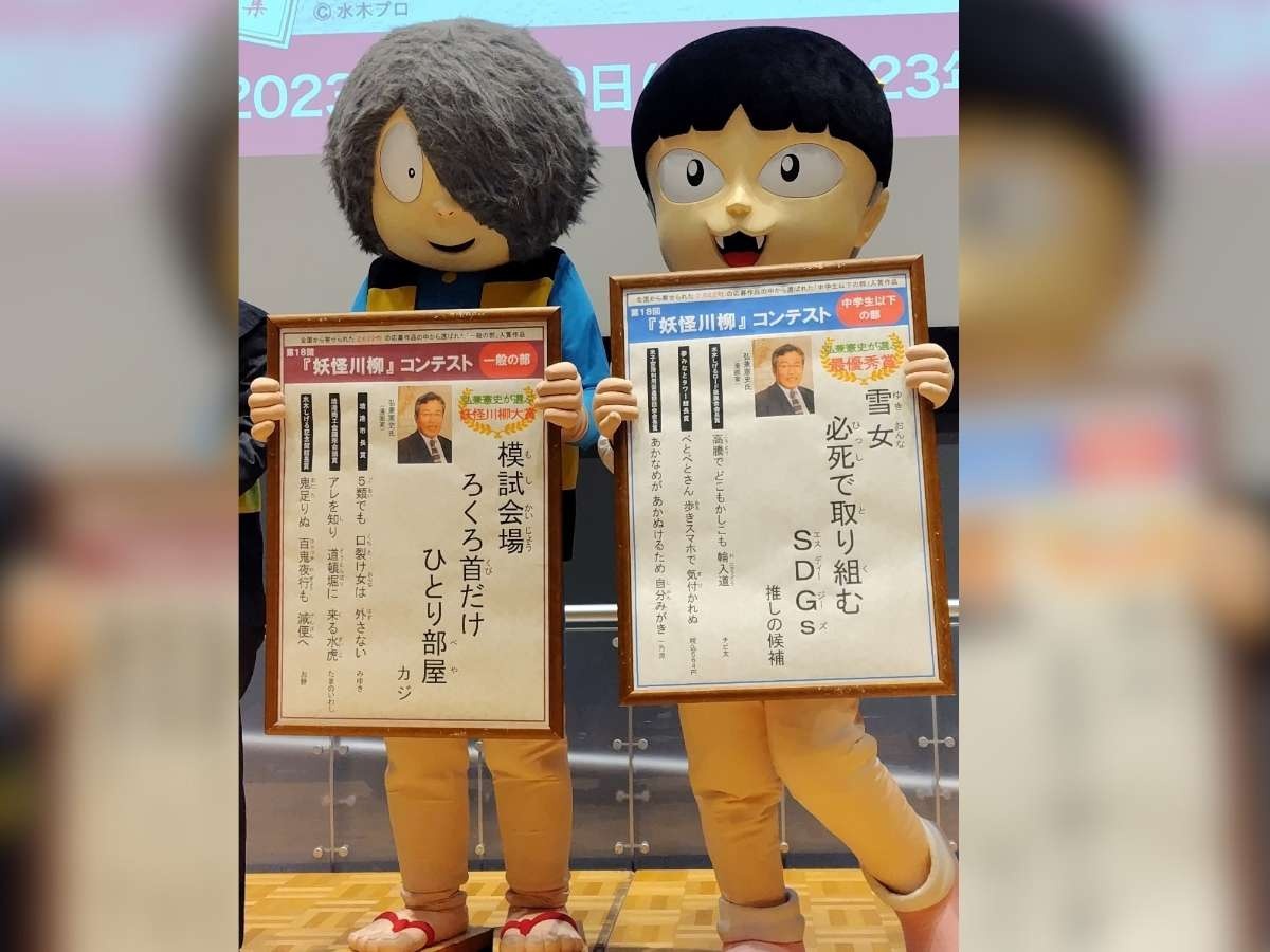同コンテストは2006年、漫画家水木しげるさん(故人)の出身地・境港を妖怪のまちとして全国にアピールする取り組みの一環でスタートし、毎年途切れることなく開催。日本全国や海外から応募があり、ピークの14年は8335句が寄せられた。「妖怪川柳大賞」など入賞作品を選考し、発表している。