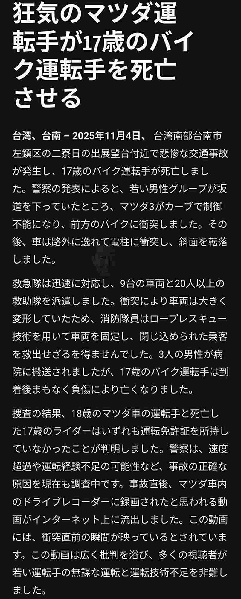 ジャパンでも免許取り立てがちょくちょく大事故を起こしてニュースになっているけど車内はこんな雰囲気なんだろうな