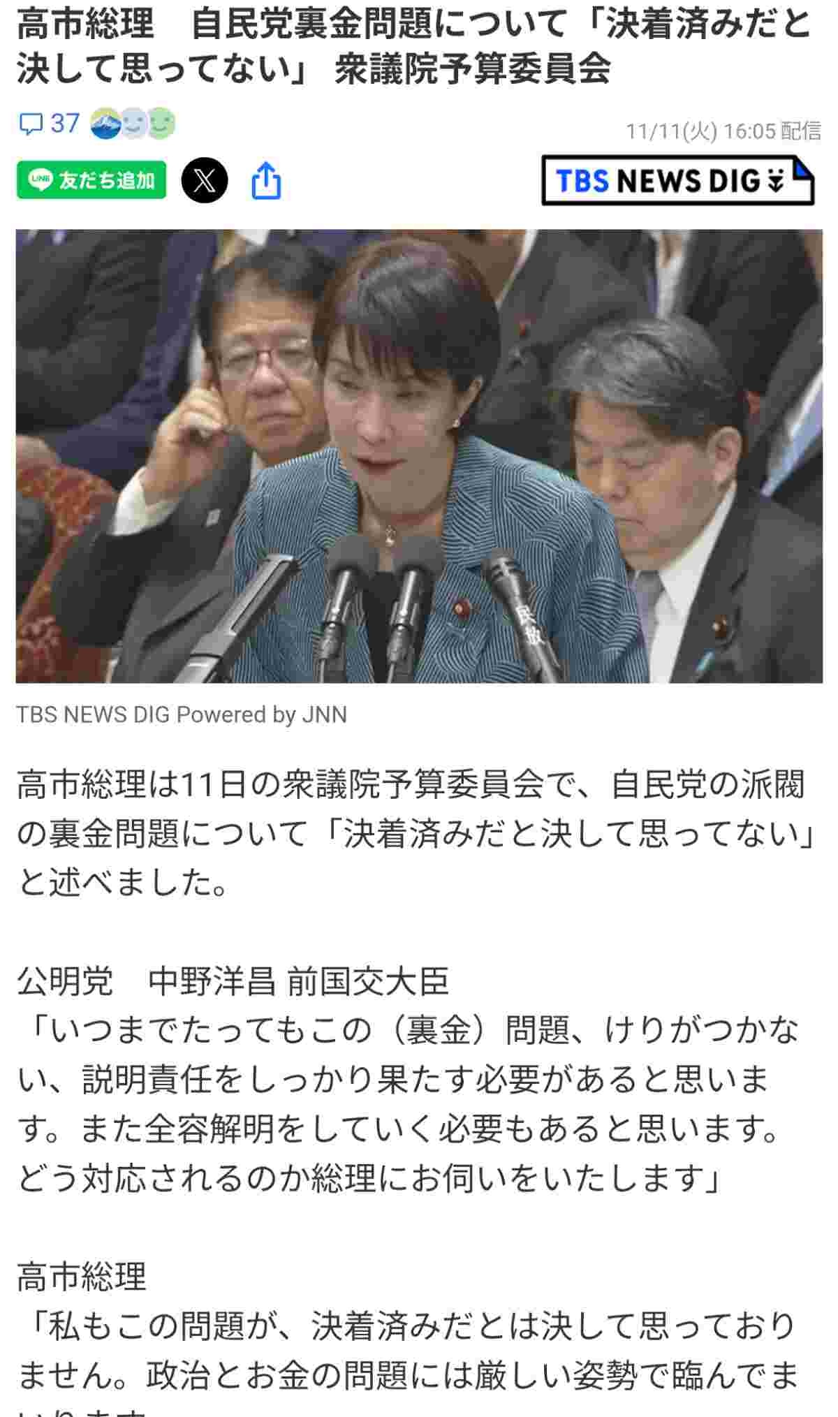 「いつまでたってもこの(裏金)問題、けりがつかない、説明責任をしっかり果たす必要があると思います。また全容解明をしていく必要もあると思います。どう対応されるのか総理にお伺いをいたします」高市総理