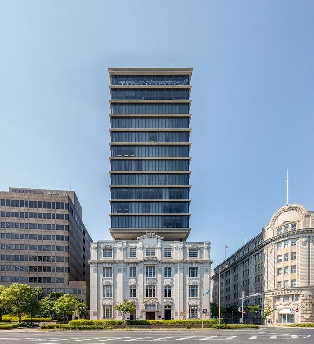 ビルの上の方に伝統建築風のもん乗っけるの