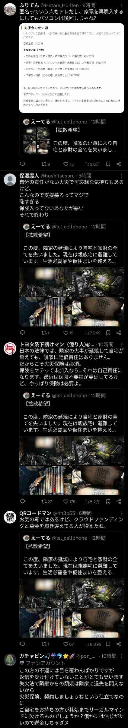 こういう時は火災保険に入ってる親戚を助けると思って募金してあげたら?
