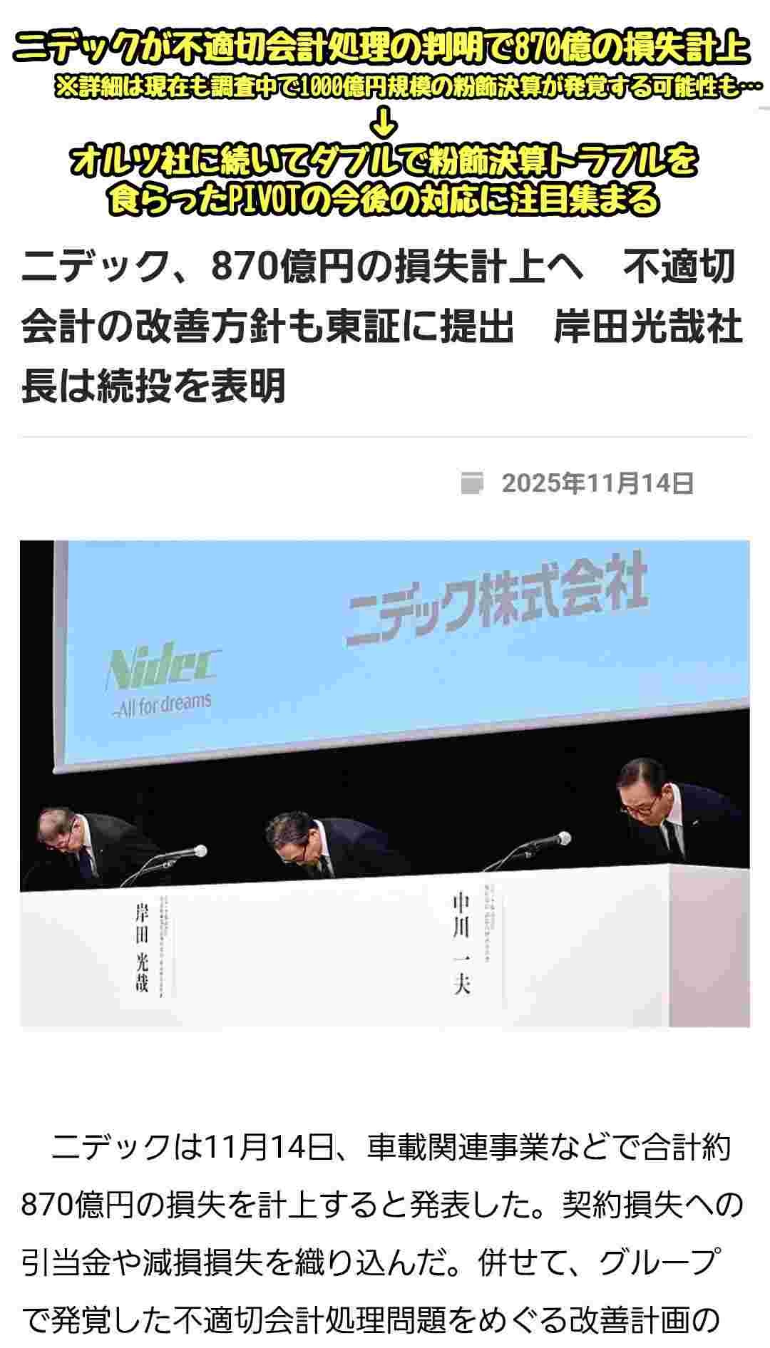 そうはいっても粉飾決算なんて外部の人間は誰も見抜けんだろ