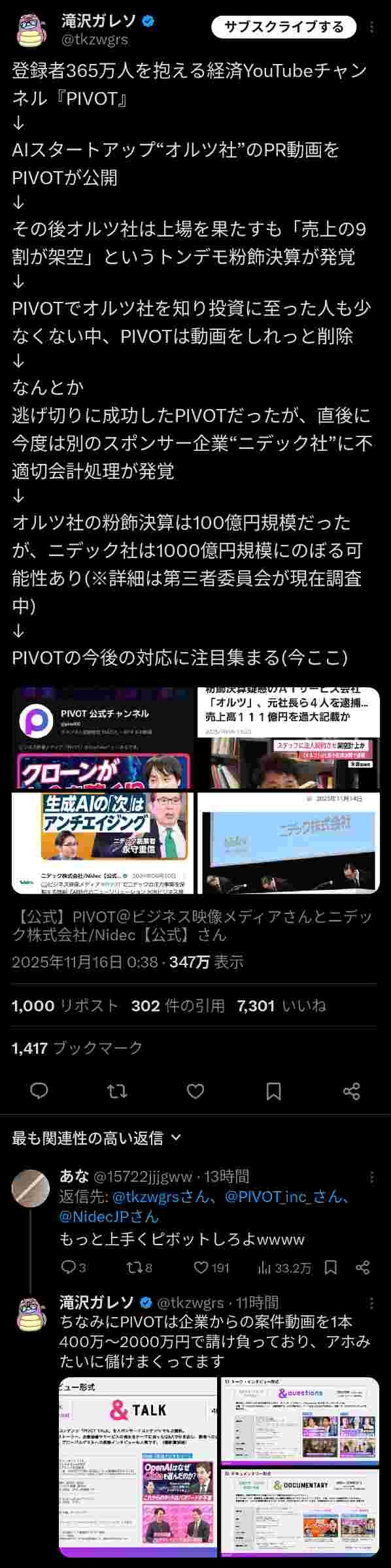 と思ったが登録者数が365万人もあるのな、