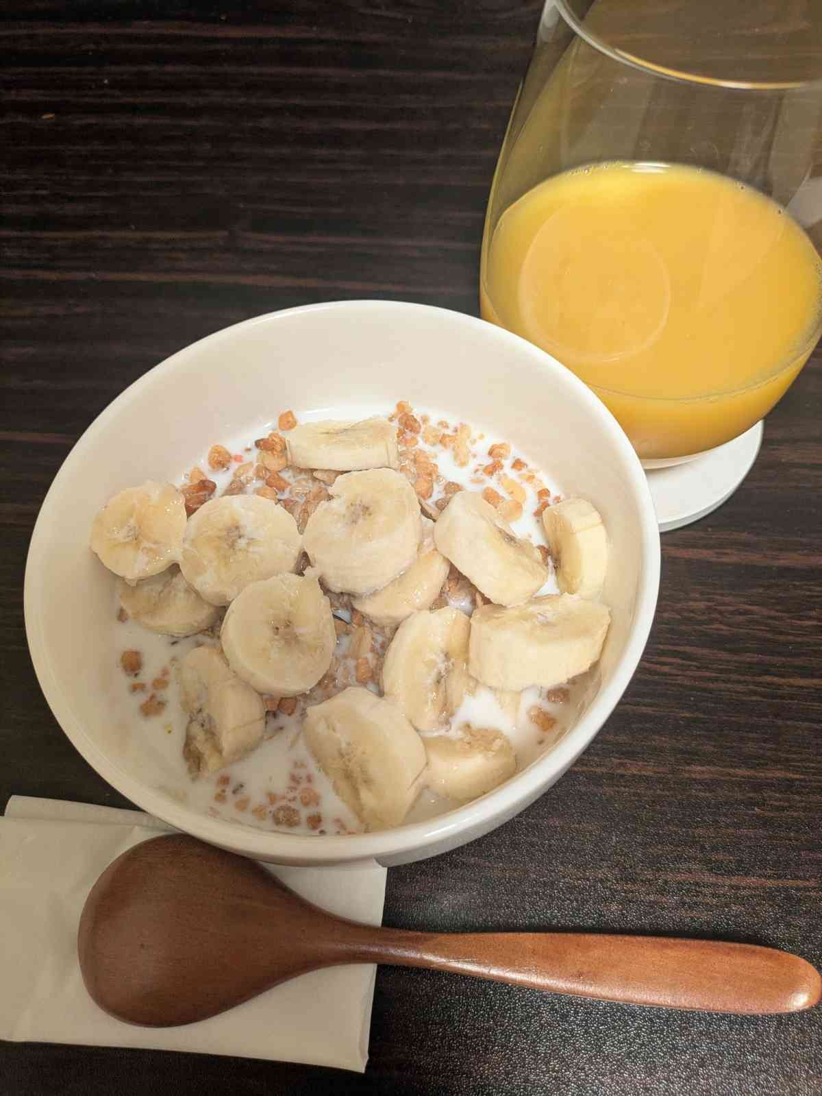 バナナを先に食べてるし、糖質オフのフルグラだし、牛乳もかけるから爆上げにならないよ