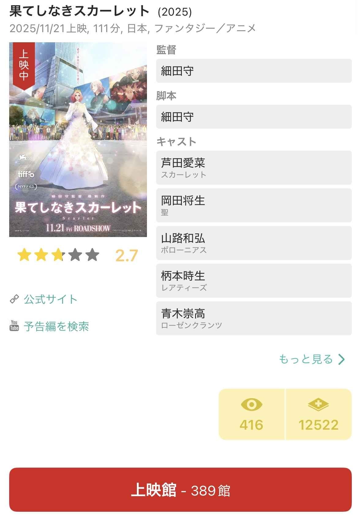 ここ最近アニメ映画ヒット続きなのに波に乗れなくて哀れな細田