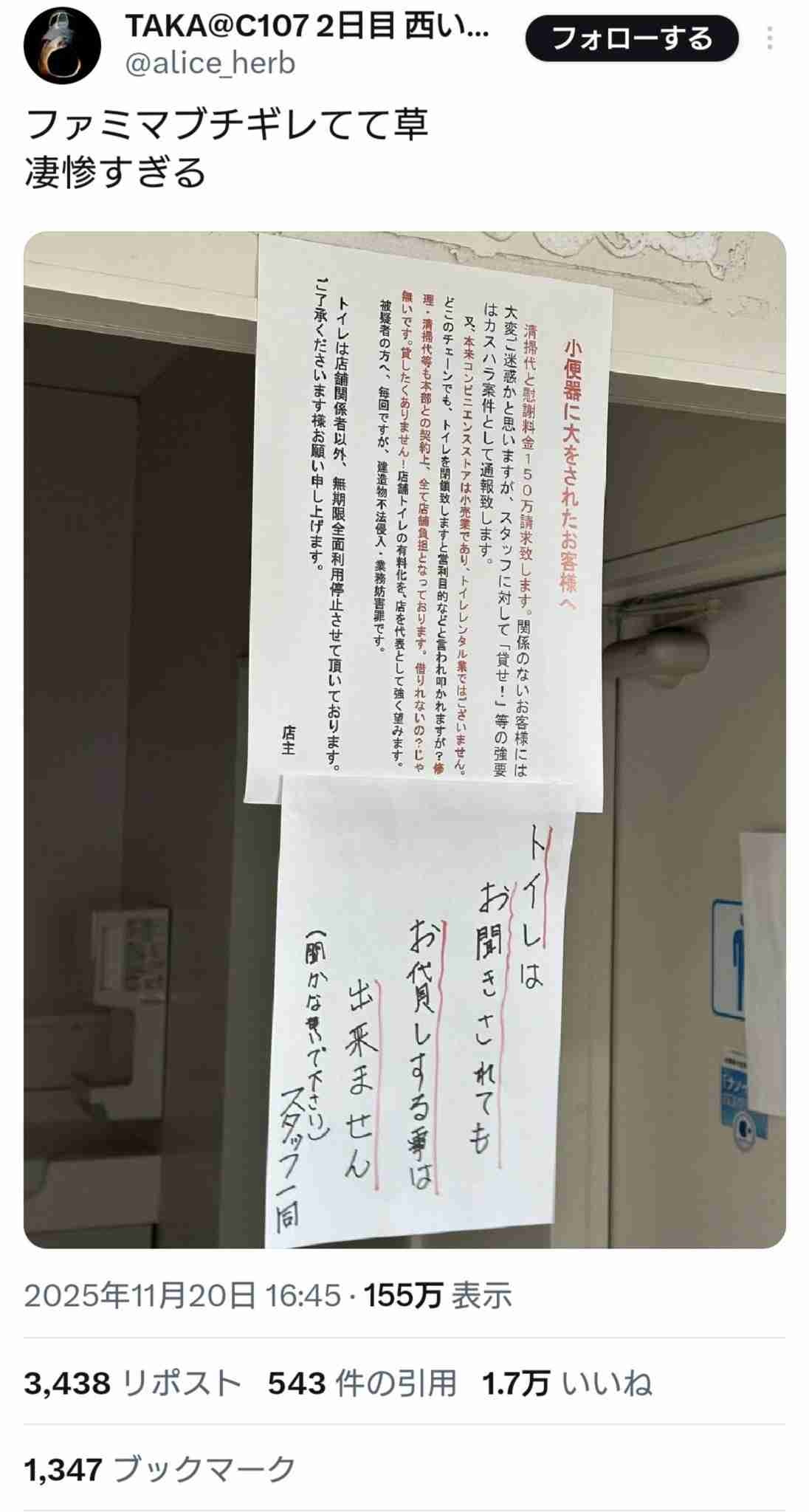 ファミマだけ鍵のかかる個室に小便器設置があるわ いつかやられんじゃないかなとは思ってた