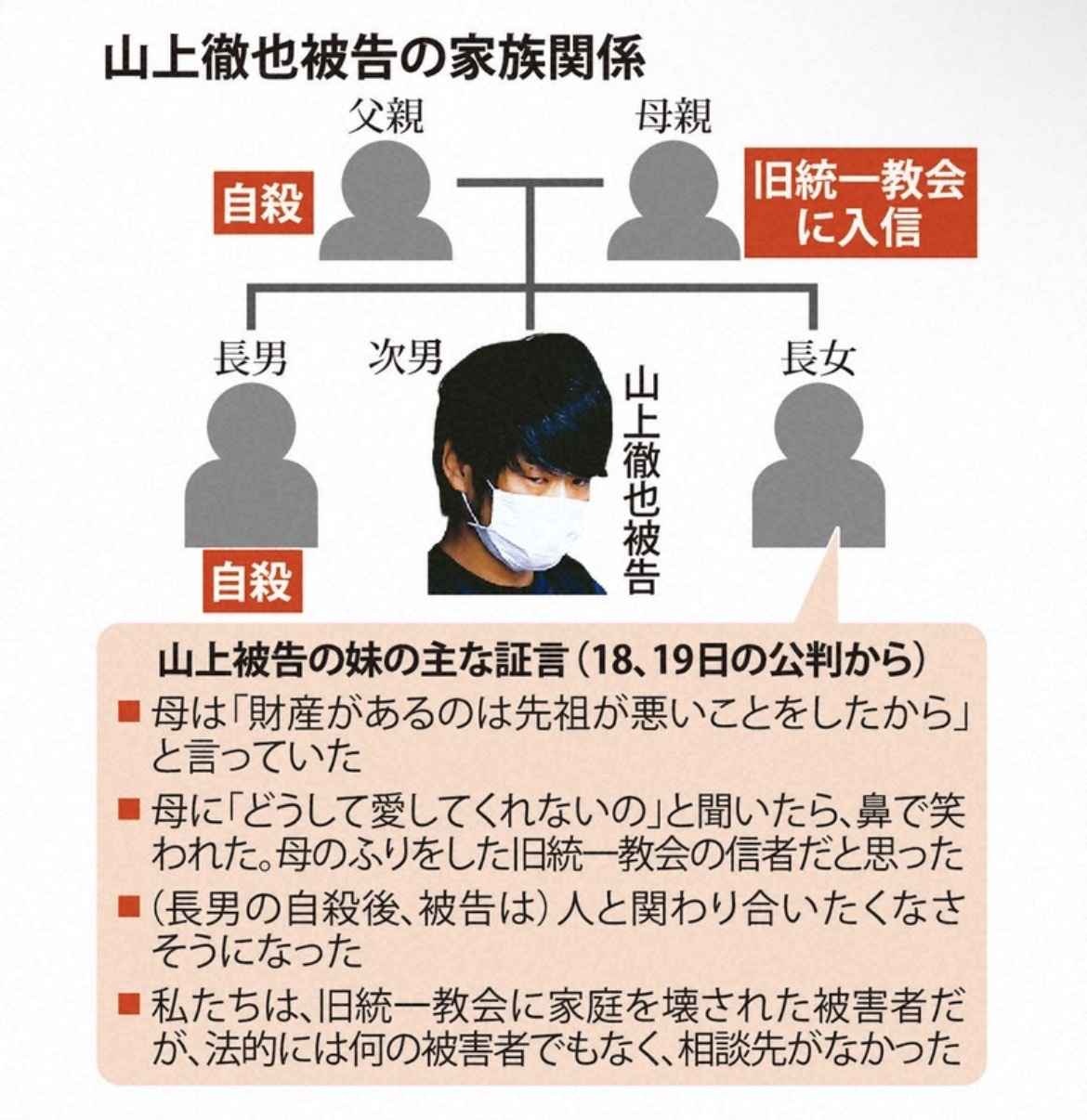 山上徹也の妹「父親と長男自殺しました、母親が宗教に5億円貢ぎ貧困、次男が総理大臣射殺しました」