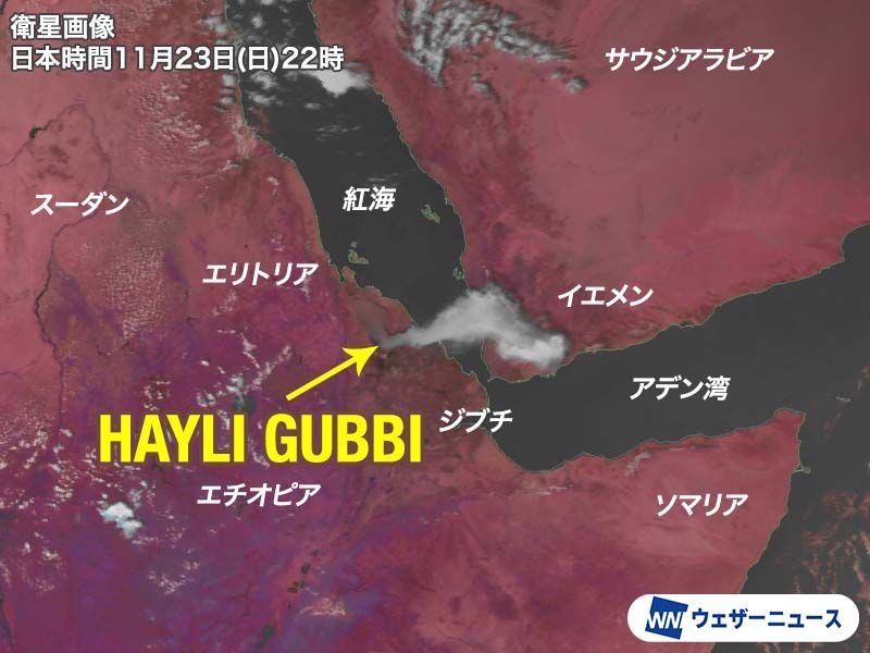 日本時間11月23日(日)17時30分頃、アフリカ・エチオピアにあるハイリ・グッビ火山で大規模な噴火が発生しました。