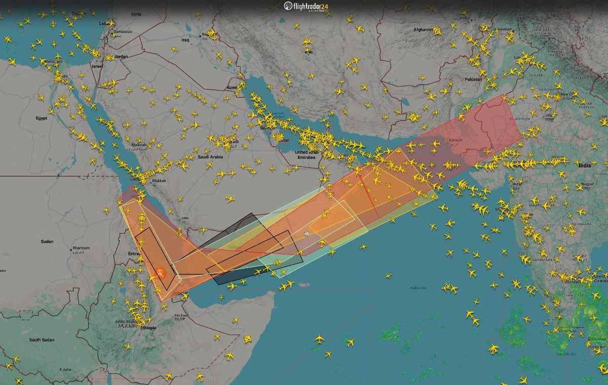紅海とアラビア海直撃だから航空便かなり乱れそうね