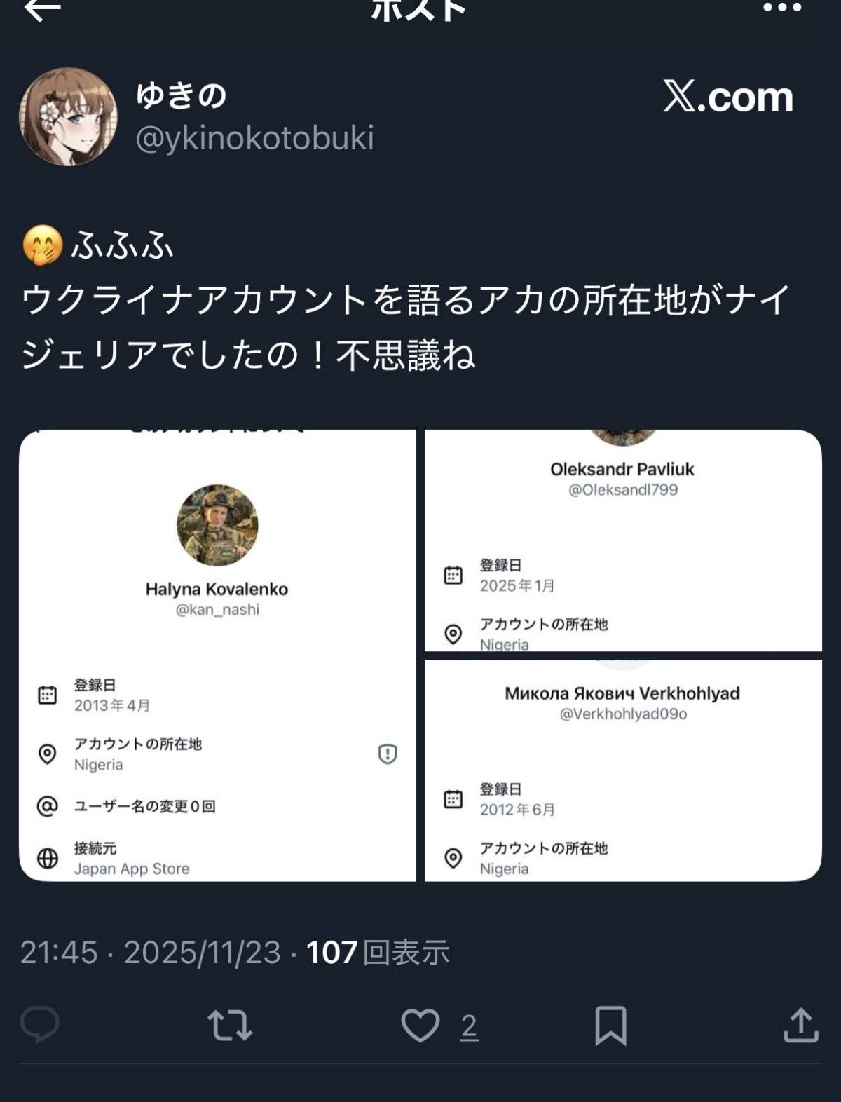 11月21日頃から順次展開されたこの機能は、IPアドレスやデバイス情報、アプリストアデータを基に判断し、ボットや偽アカウント対策を目的としています。日本では「琉球独立」を主張するアカウントが中国や香港経由のものが多く、海外在住を自称するアカウントが日本表示になるケースが目立ち、注目を集めました。一方でVPN使用や複数デバイスで不正確になる例もあり、NHK公式アカウントが米国表示されたり、海外在住者が日本を示されたりして疑問の声も。透明性を高める狙いですが、旅行中などの誤解を招く可能性があり、参考情報として慎重に使うのがよさそうです。 https://x.com/i/x.com