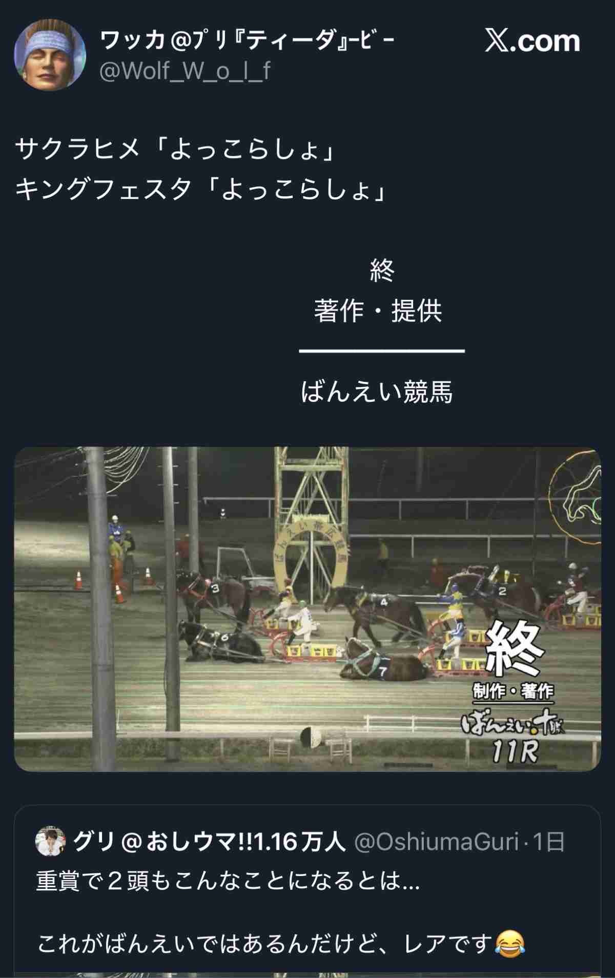 ばんえいって普通に八百長で騎乗停止くらったりしてたことあったから完全に頭抜けてんべ