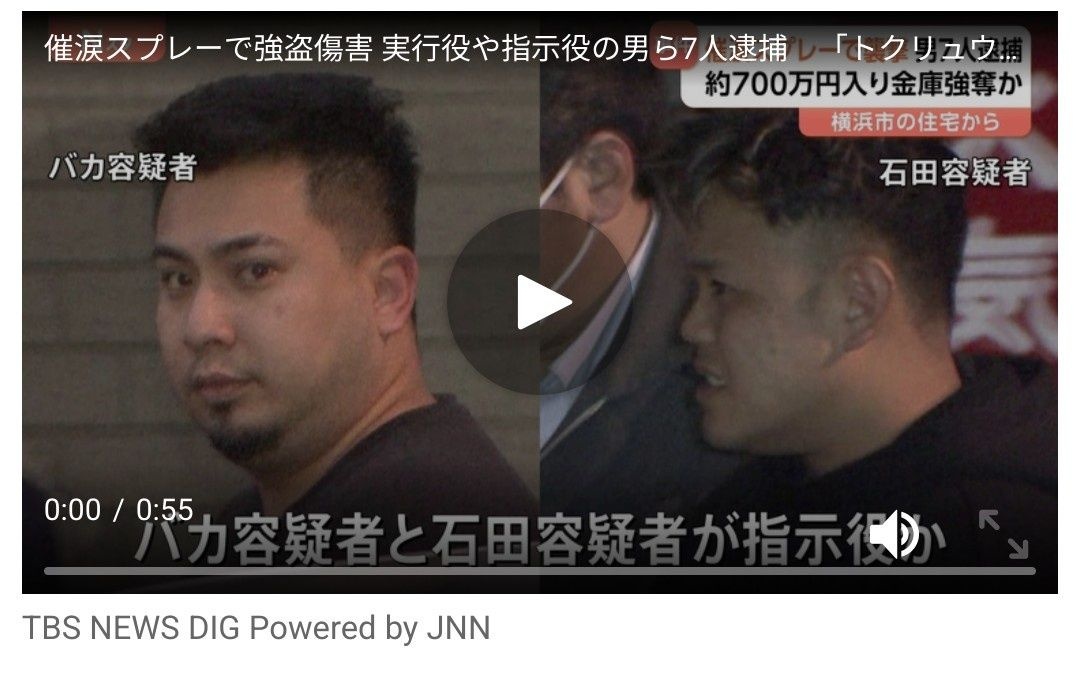 催涙スプレーで強盗傷害 実行役や指示役の男ら7人逮捕 「トクリュウ」による犯行か 今年7月 横浜市(TBS NEWS DIG Powered by JNN)