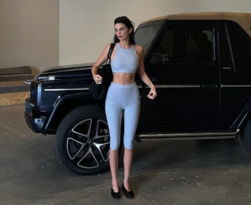 【写真】論争の火付け役といわれるケンダルのタイトなレギンス姿。体のラインがクッキリと出ている。圧巻の9頭身ボディだ。