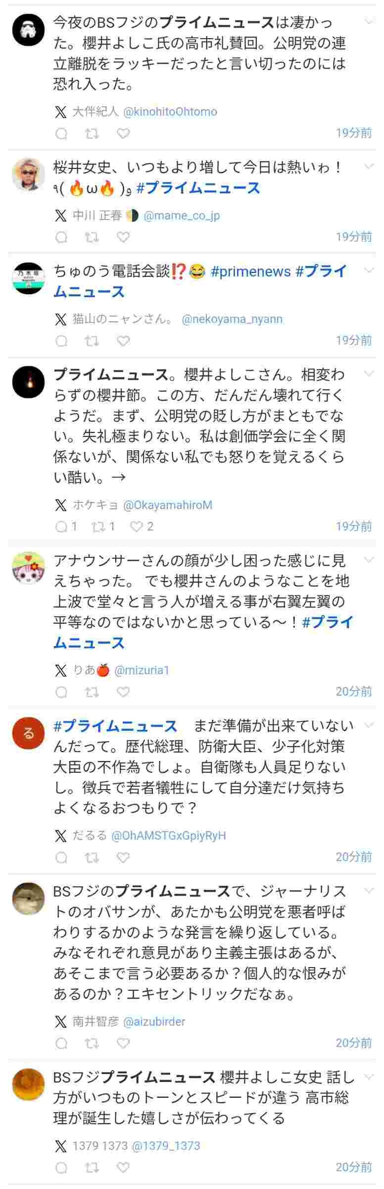 BSフジ・プライムニュースに絶賛出演中の櫻井よしこ女史、高市礼賛で好き勝手言いまくる