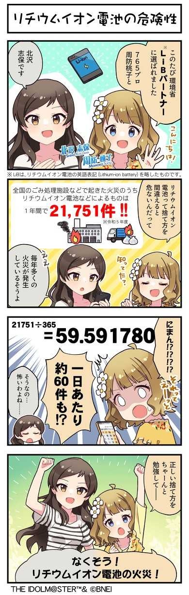 環境省は、2025年12月30~31日に開催される「コミックマーケット107」(冬コミ)に出展すると発表した。リチウムイオン電池による火災防止啓発を目的に、「アイドルマスター ミリオンライブ!」とのコラボグッズを配布する。