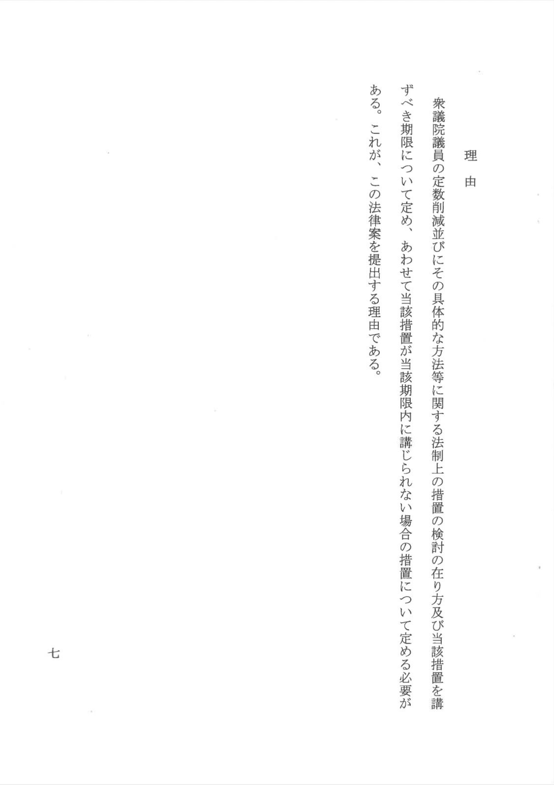 法案が出たので、やれやれ、これでやっと議員定数削減の理由が分かるぞと思って読んだらこれ。